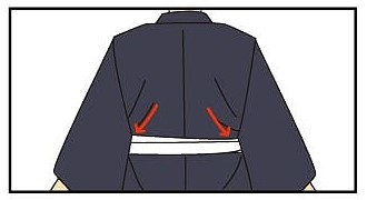 長襦袢の衿が1cm~2cm見えるように紐を脇に通して着物を着せます。