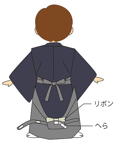 袴のずれが気になる場合はサスペンダーをつけてください。