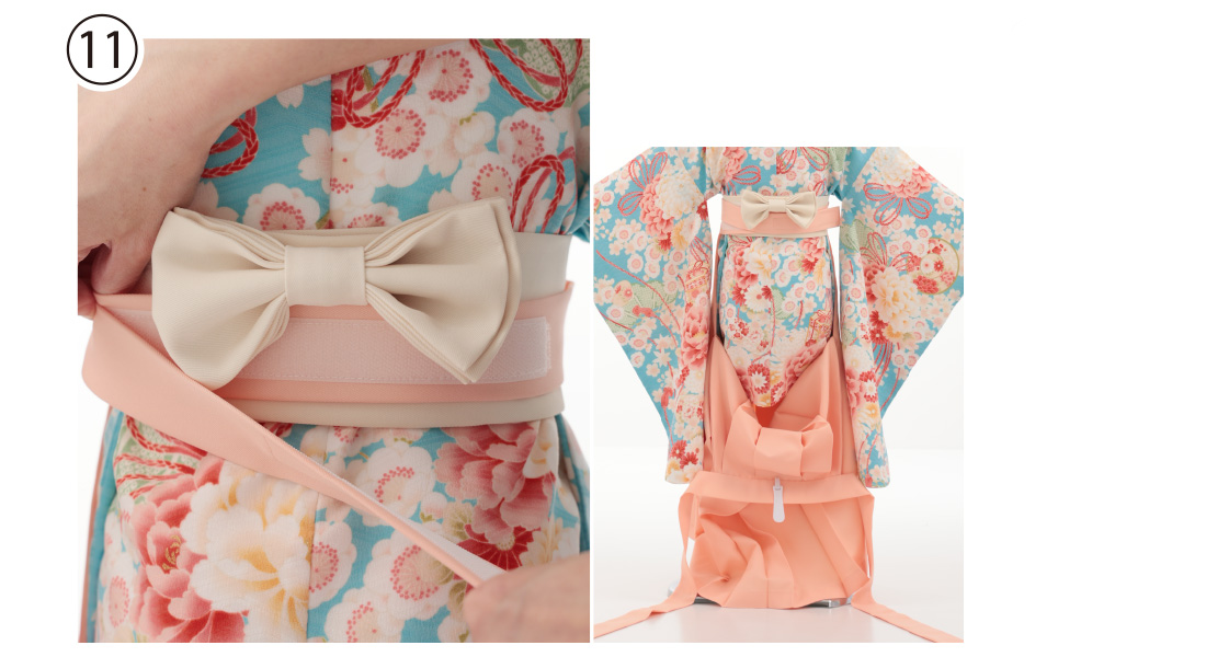 帯ベルトを、腰ひもの上から身体に巻き、背中で固定します。