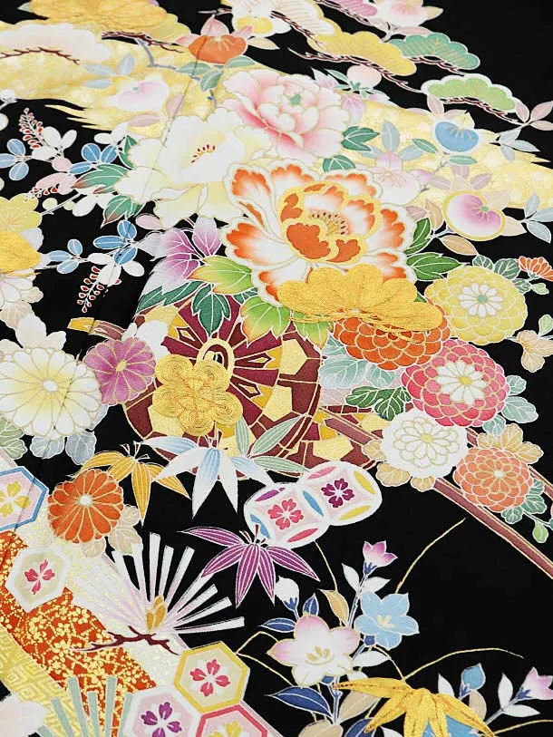 留袖 レンタルQ4-84 京友禅 花車おしどり流水