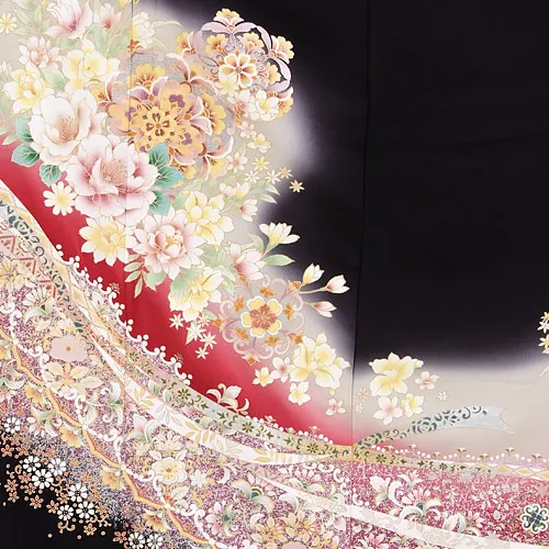 留袖 レンタル 4297ラメ入り赤花づくし