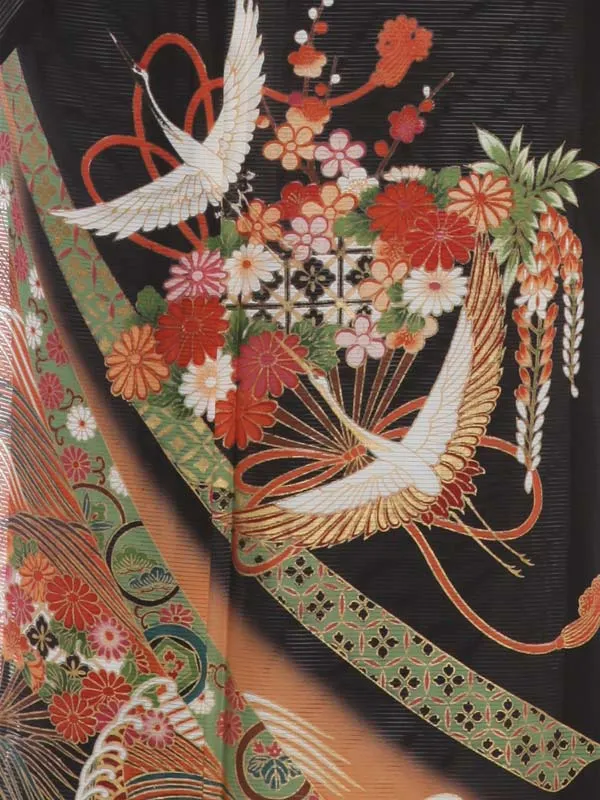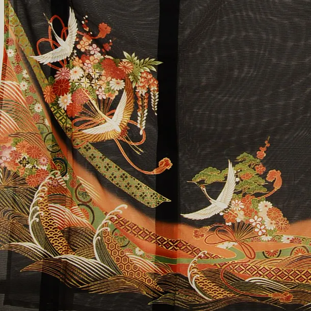 夏留袖 絽 4437 熨斗に鶴花扇(化繊)