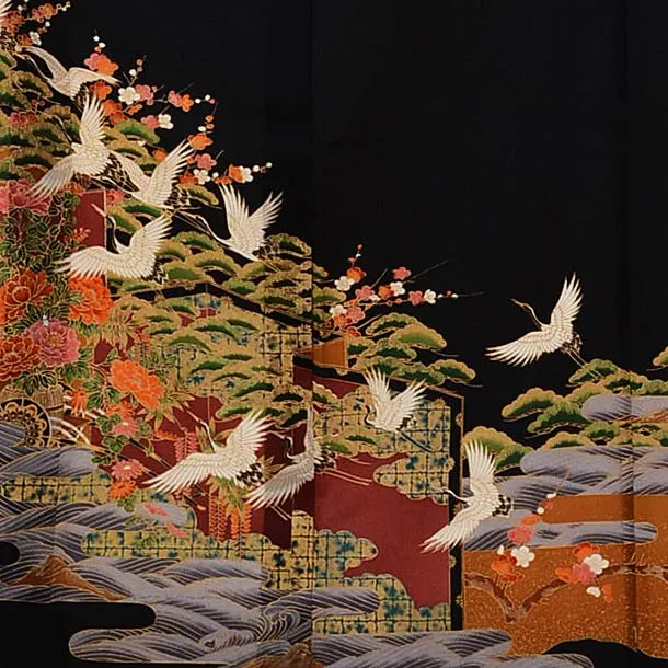 夏留袖 単衣 レンタル C4455 花車に鶴(化繊)