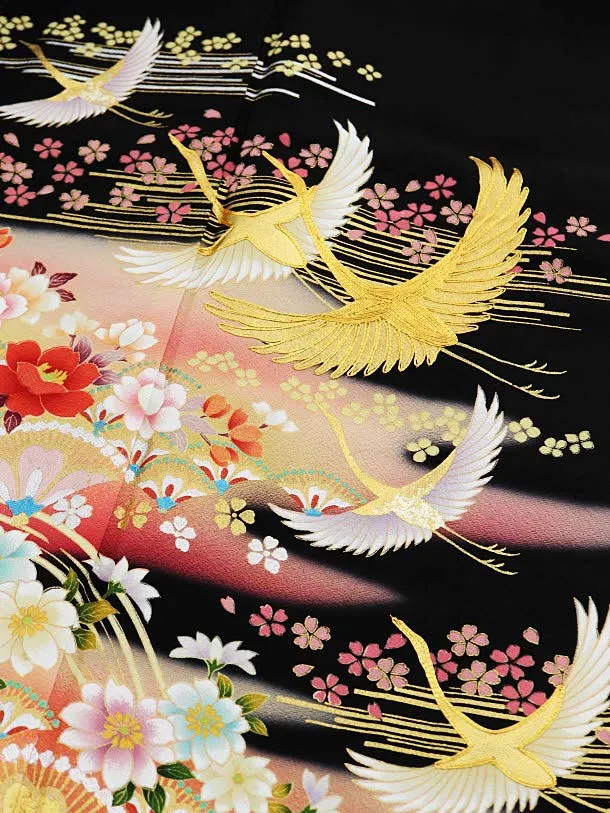 留袖 レンタル4472 京友禅 正倉院文様鶴小花