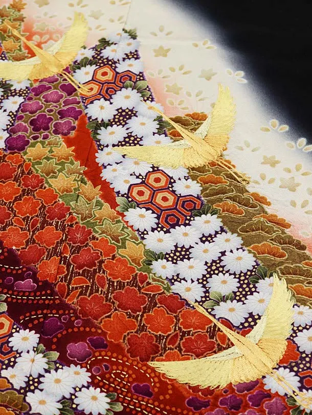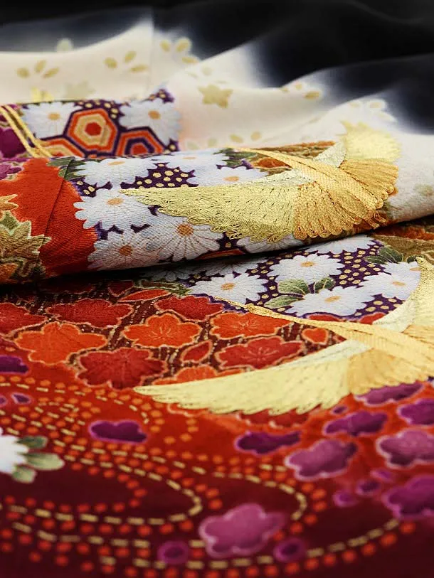 留袖 レンタル4479 絞り 鶴 金コマ刺繍