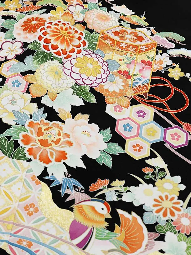 留袖 レンタル4481 貝桶におしどり 牡丹 菊