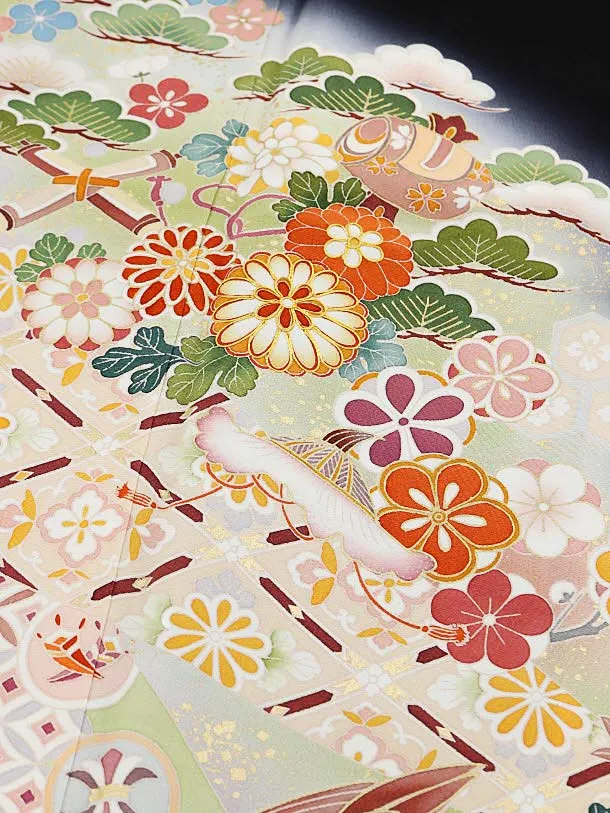 留袖 レンタル4482 ぼかし 檜扇 凡帳菊