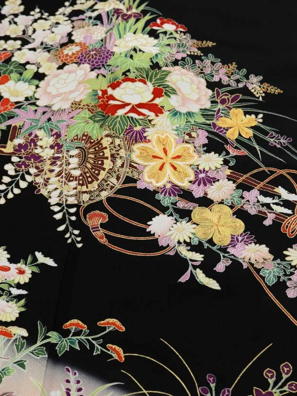 留袖 レンタル5376 京友禅 花車 四季花