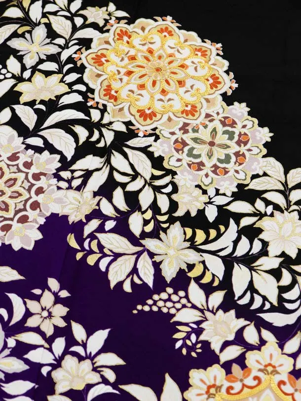 留袖 レンタル5390 紫ぼかし 華紋 唐花