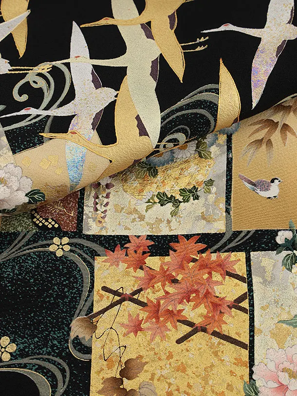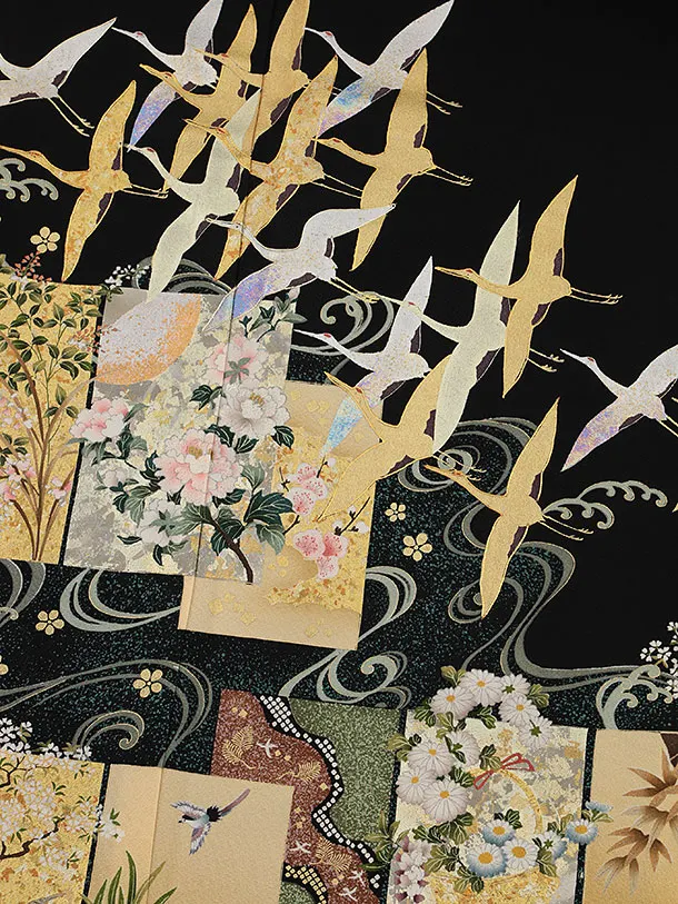 留袖 レンタル5406 寛斎 群鶴 流水琳派図