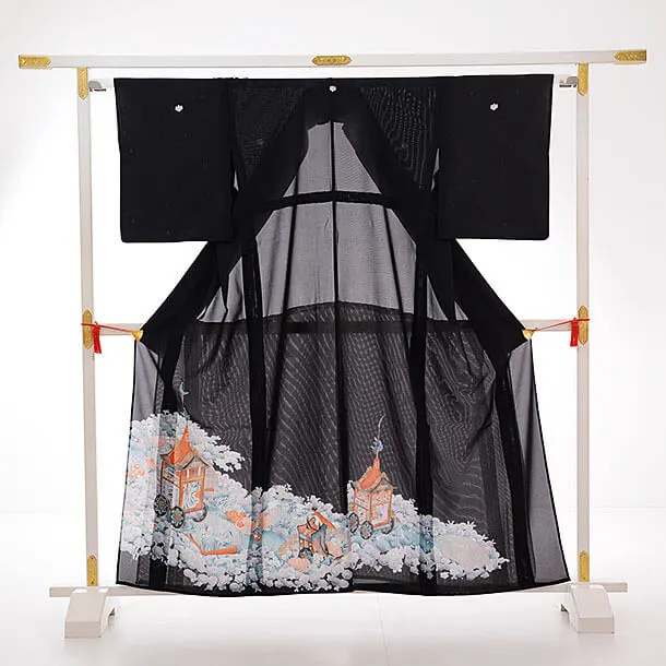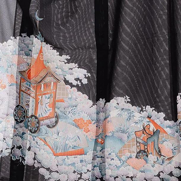 夏留袖 絽 Q6-64 鉾に御所車(化繊)