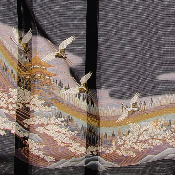 夏留袖 絽 6092 パープル 梅に飛鶴(化繊)