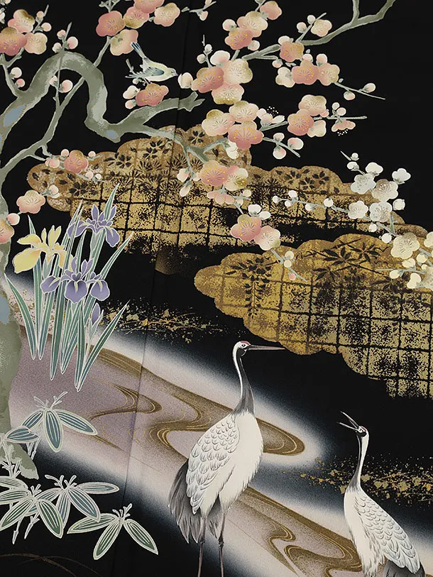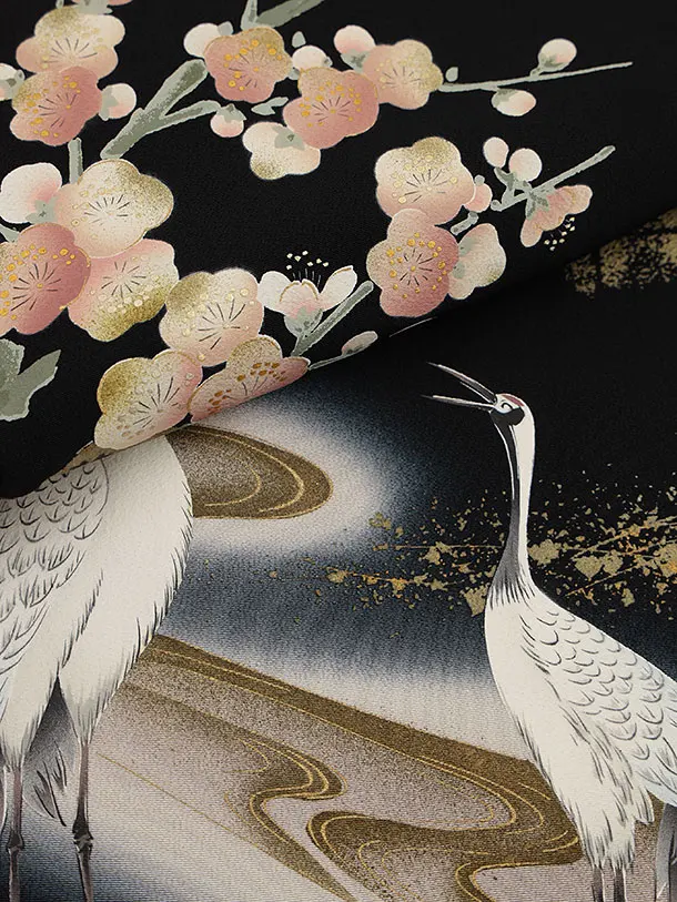留袖 レンタル6115 寿鶴 紅白梅図