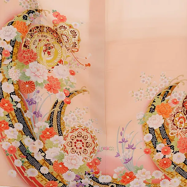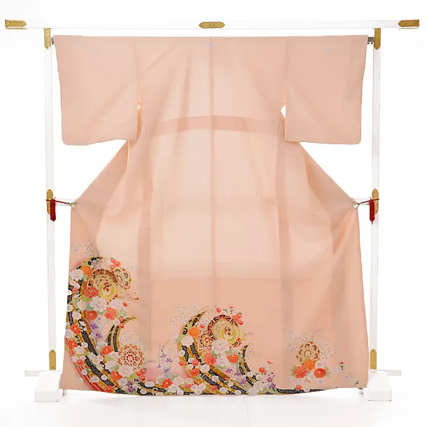 色留袖レンタル702薄オレンジ色立浪に裏鏡