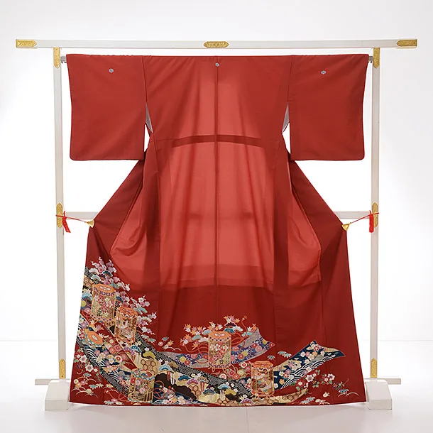 色留袖レンタル 723 ジャパンスタイル 赤茶 のしに貝桶