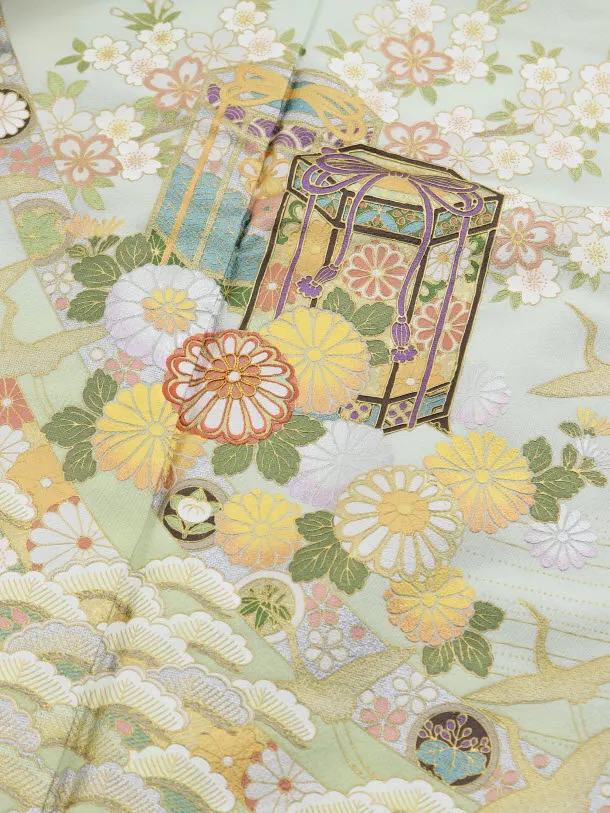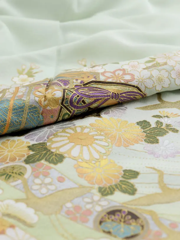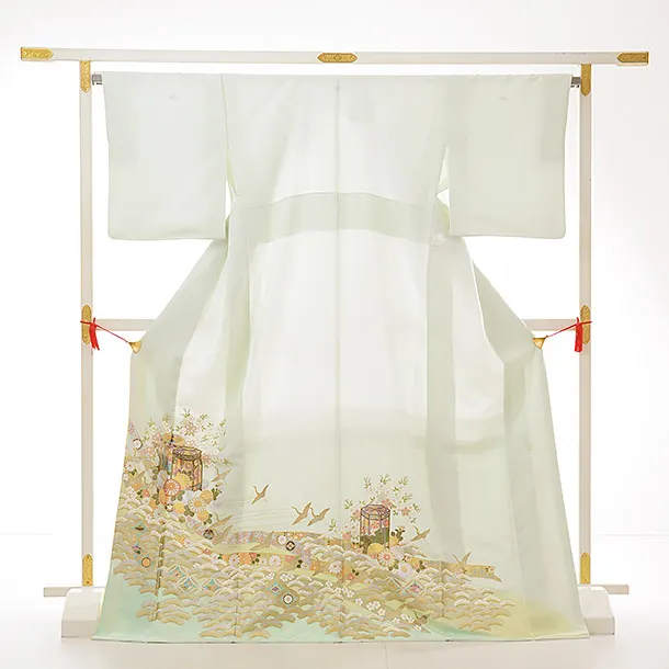 色留袖レンタル 744 桂由美 パステルグリーン 金彩 貝桶 桜菊