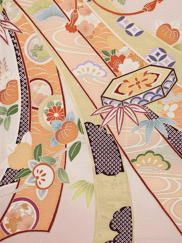 色留袖レンタル 0755 ピンク地 束ね熨斗 貝桶
