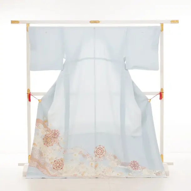 色留袖レンタルQt0758 ペールグレー地 唐花文(トールサイズ)