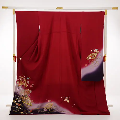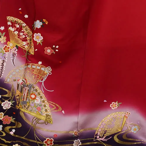 Q335ワイン扇面と桜刺繍(大きいサイズ)