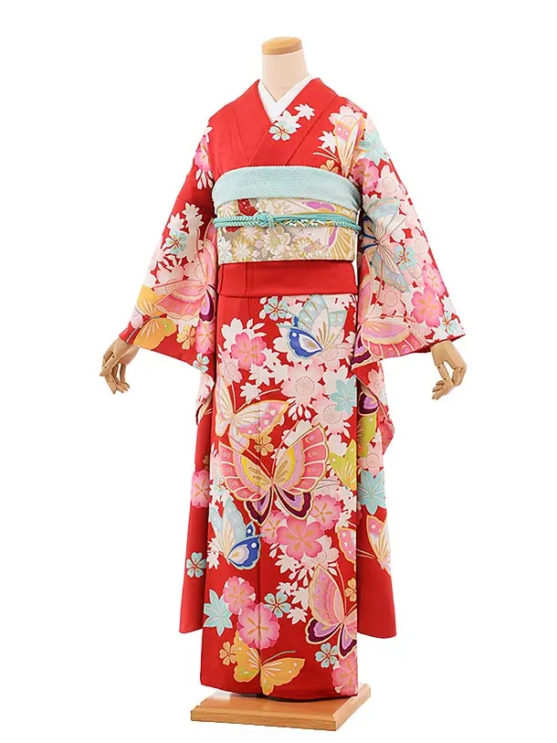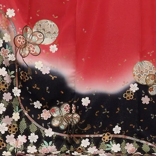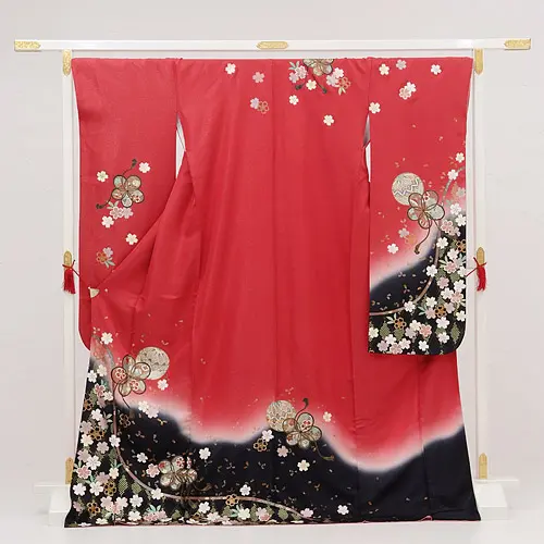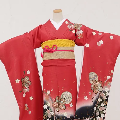 振袖レンタル345赤地裾ぼかし小手鞠桜ちらし