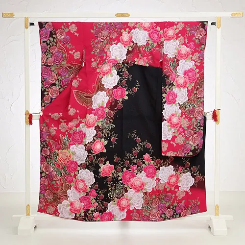 振袖レンタル526赤蝶Sサイズ振袖(小さいサイズ)