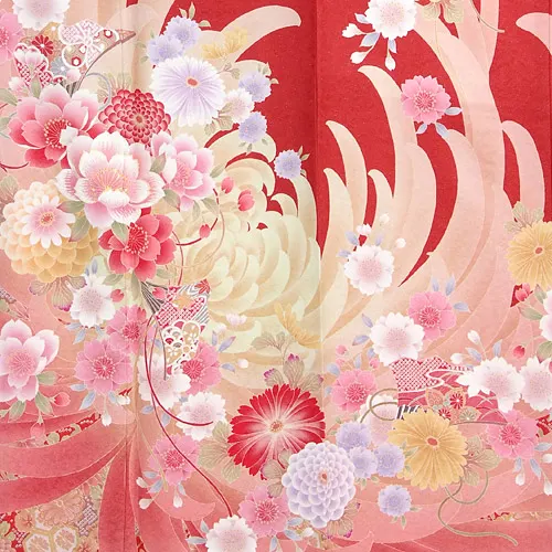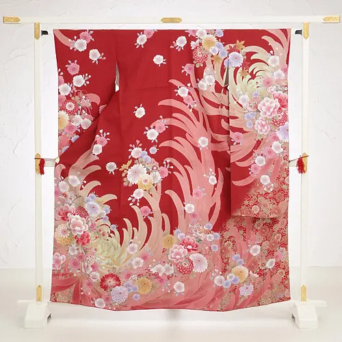 振袖レンタル529赤乱菊Sサイズ振袖(小さいサイズ)