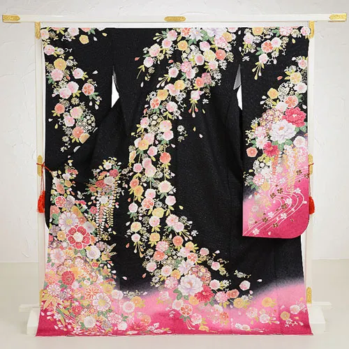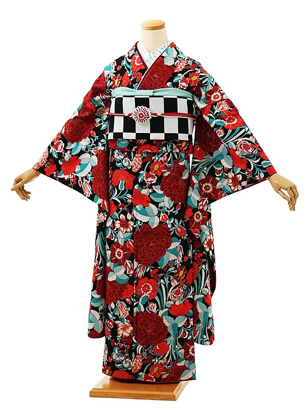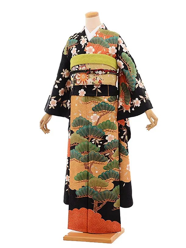 振袖レンタル596tallブラック(トールサイズ)
