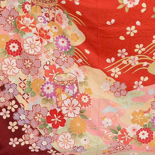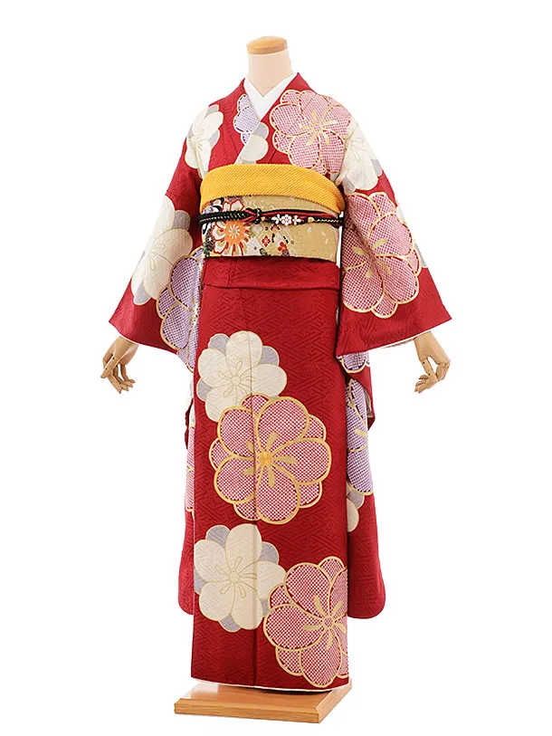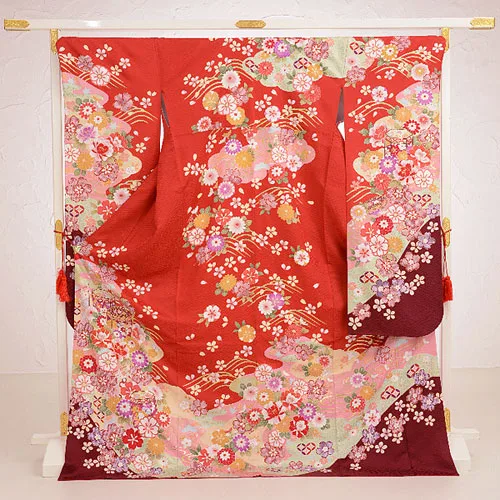振袖レンタル599tallレッド貝桶(トールサイズ)