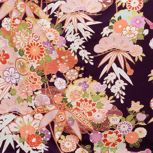 振袖レンタル672紫地雪輪松竹梅