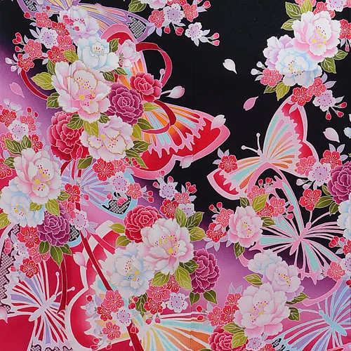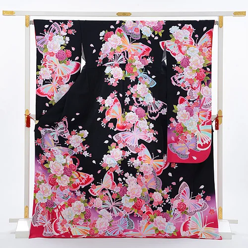 振袖レンタル711黒地にピンク蝶