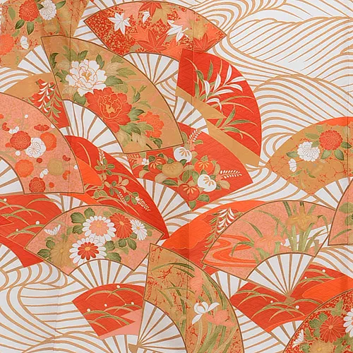 振袖レンタル722大和染工白地波に扇面