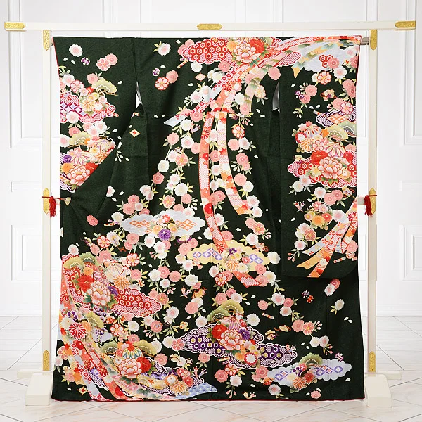 振袖レンタル765濃グリーン地熨斗