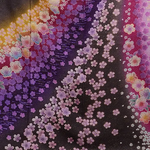 振袖レンタル816濃グレー茶ラメ桜流れ