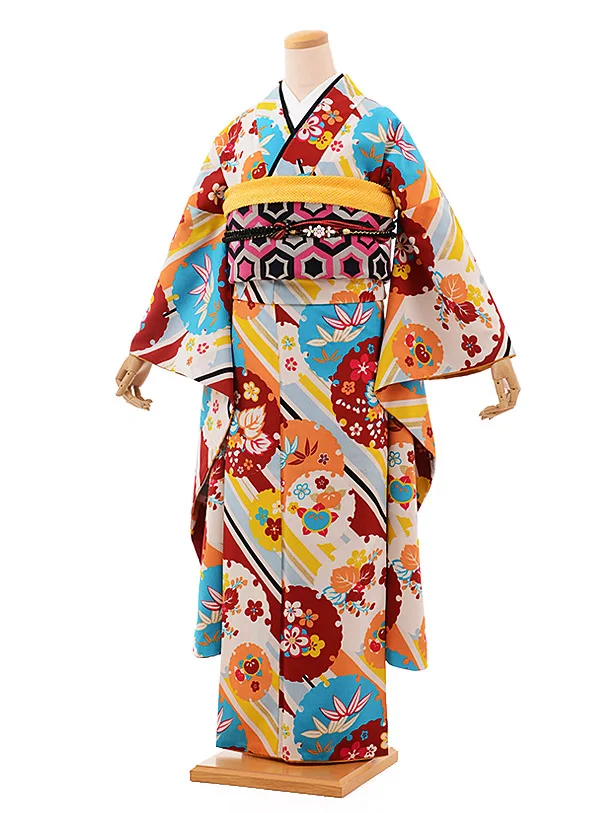 振袖レンタル856モダンアンテナ赤×ブルー雪輪