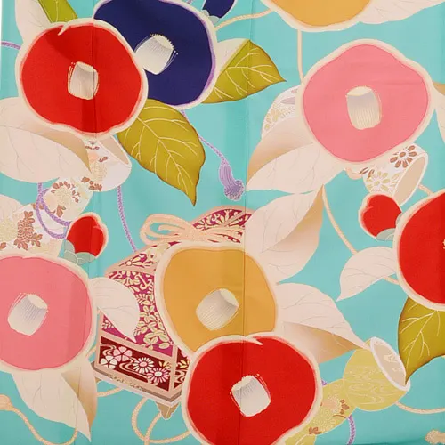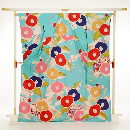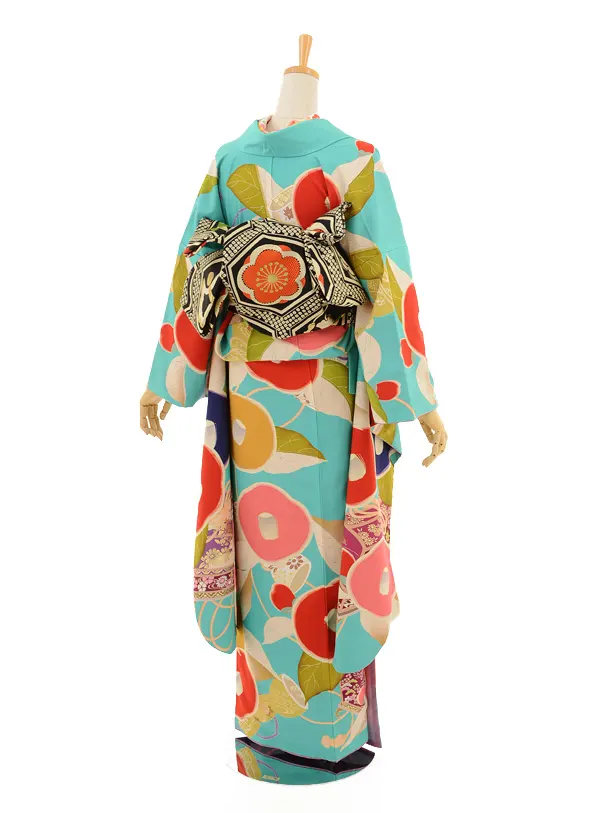 振袖レンタル880UNSODOコバルトブルー地に椿