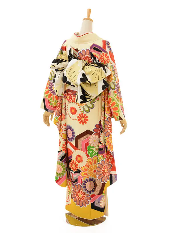 振袖レンタル887JAPANSTYLEクリーム色古典柄