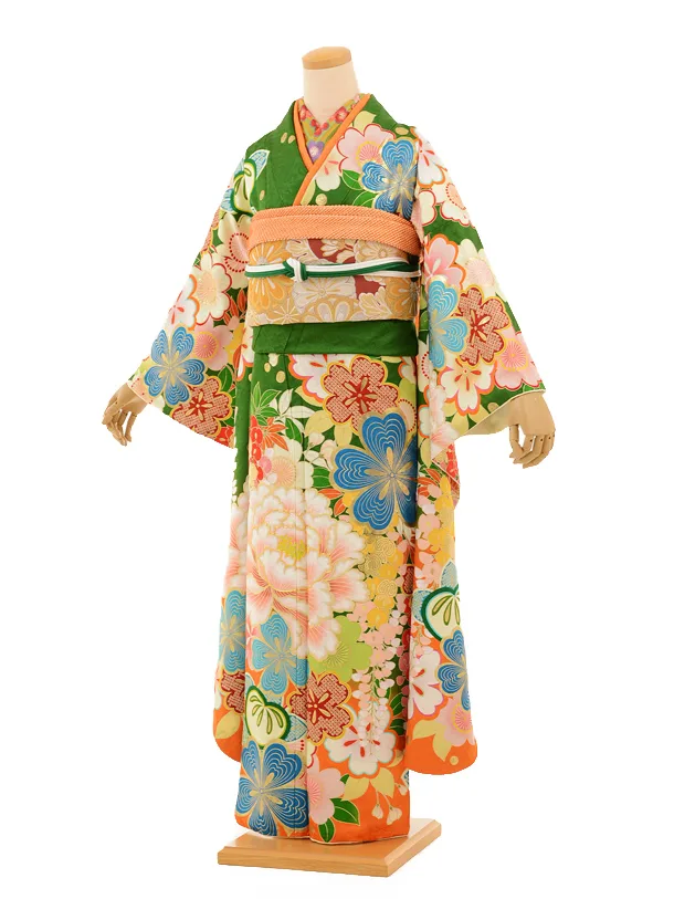 振袖レンタル935earthmusic&ecology深緑扇松竹梅寿柄