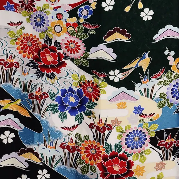 振袖レンタル958深緑地紅型菊ぼたん