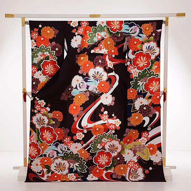 振袖レンタル960こげ茶色松竹梅に菊