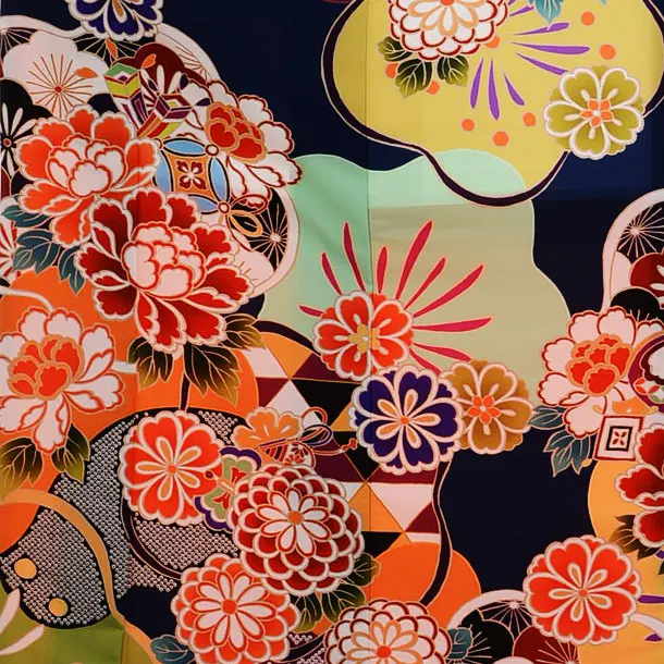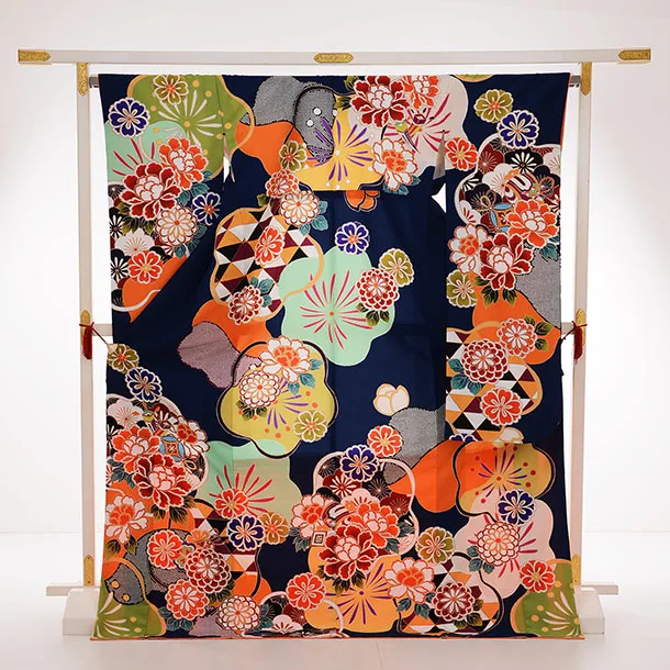 振袖レンタル962紺地ぼたん梅