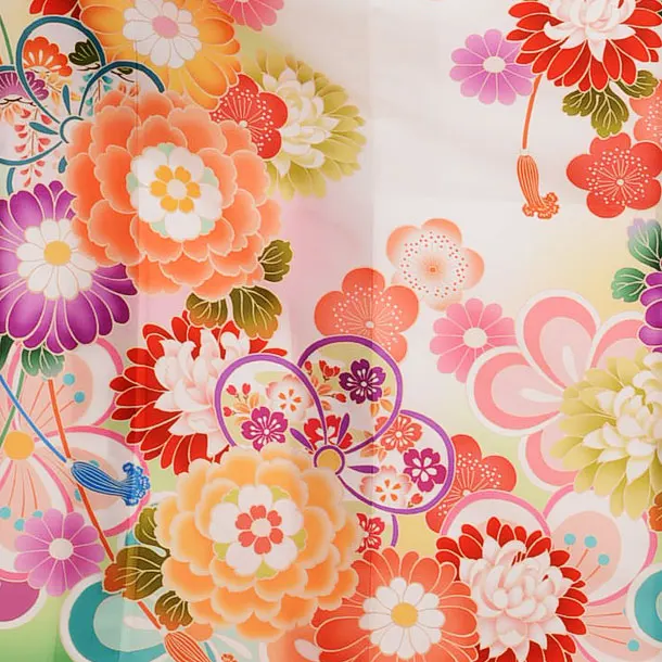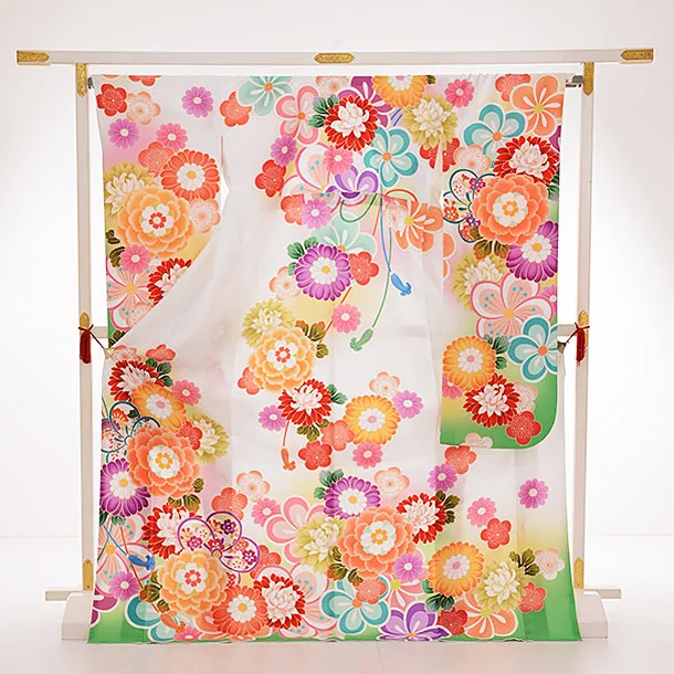 振袖レンタル966白地裾グリーン花づくし