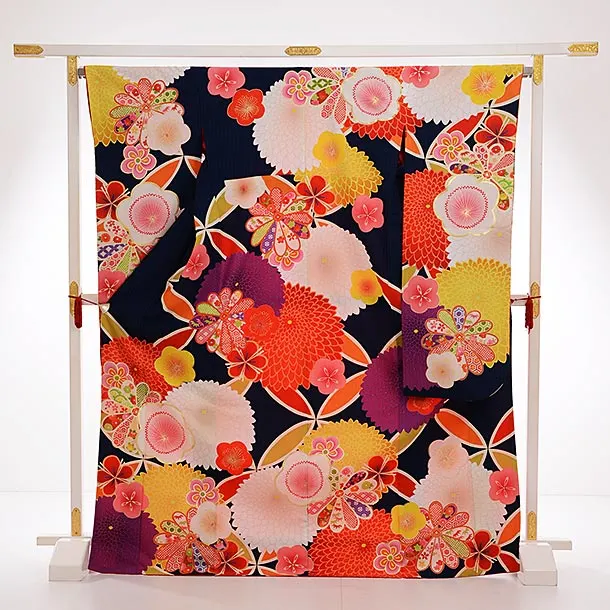 振袖レンタル981JAPANSTYLE紺地古典菊梅