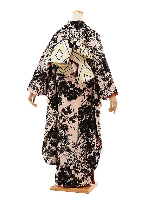 振袖レンタル985九重アイボリー黒ぼたん椿