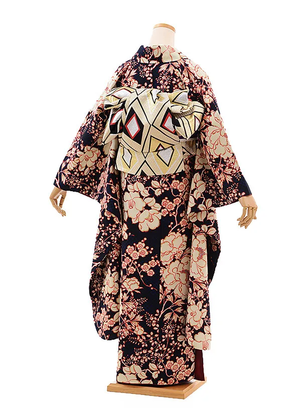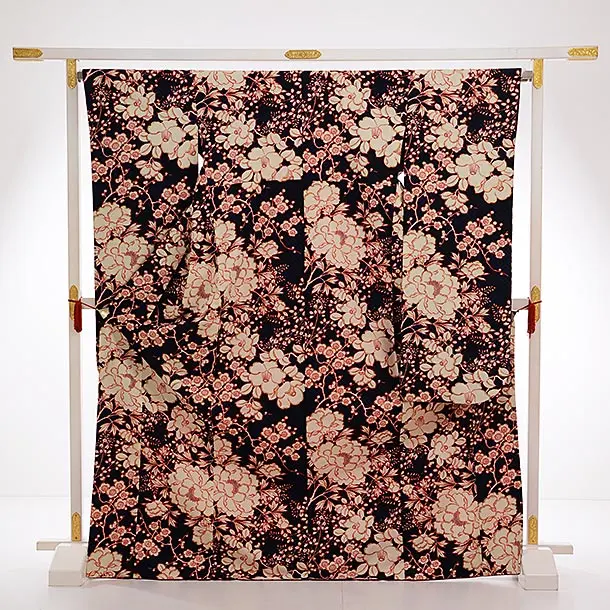 振袖レンタル986九重黒地オフホワイトぼたん椿