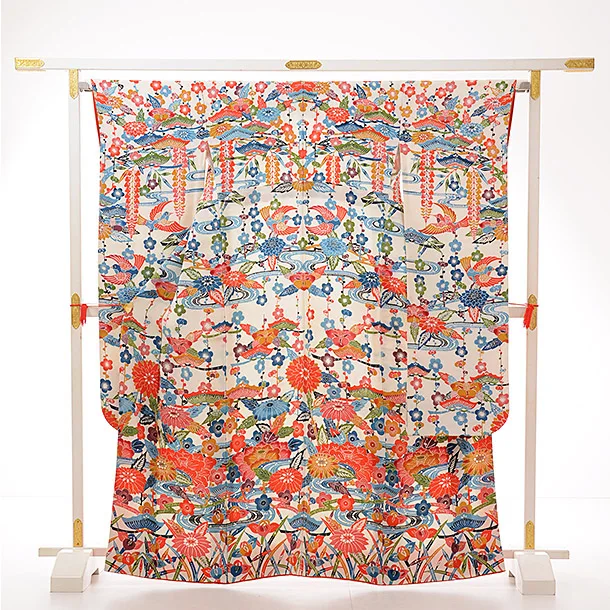 振袖 1004 白地 紅型 花鳥