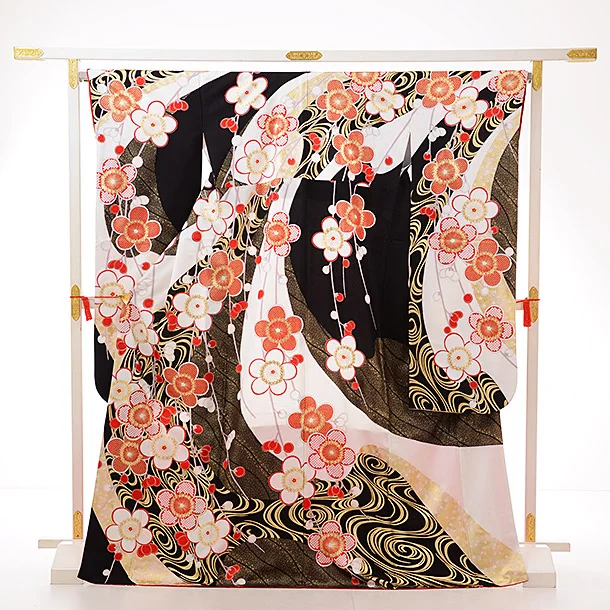 振袖 1013 三吉彩花 白×黒 梅