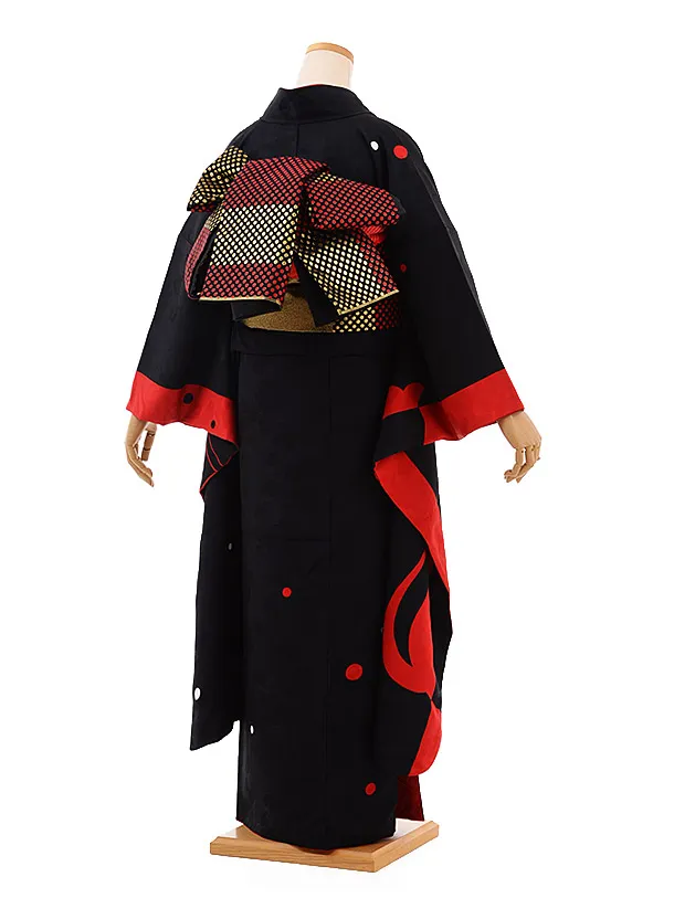 振袖 1017 黒×赤 猫