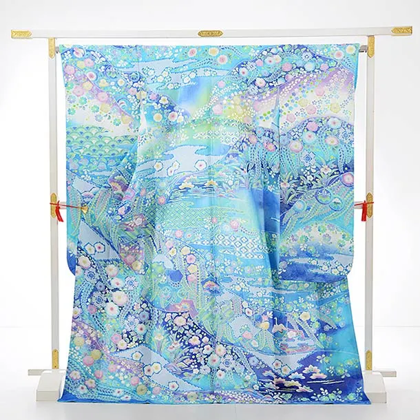 振袖レンタル1050ターコイズラメ辻ヶ花
