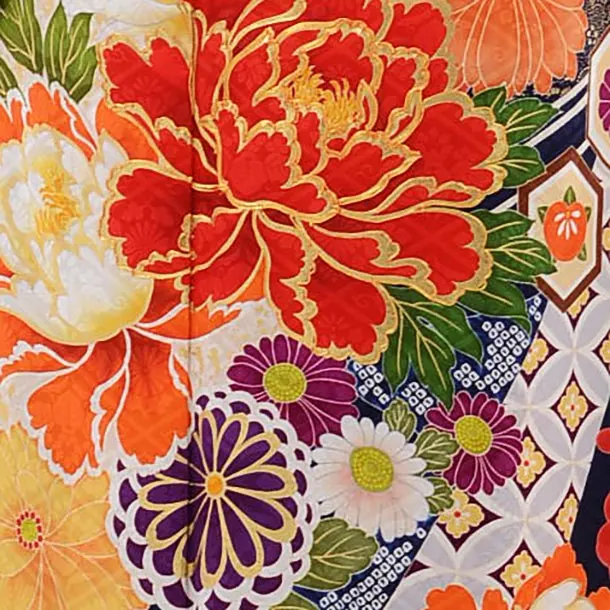 振袖レンタル1061紺地牡丹に桜七宝柄
