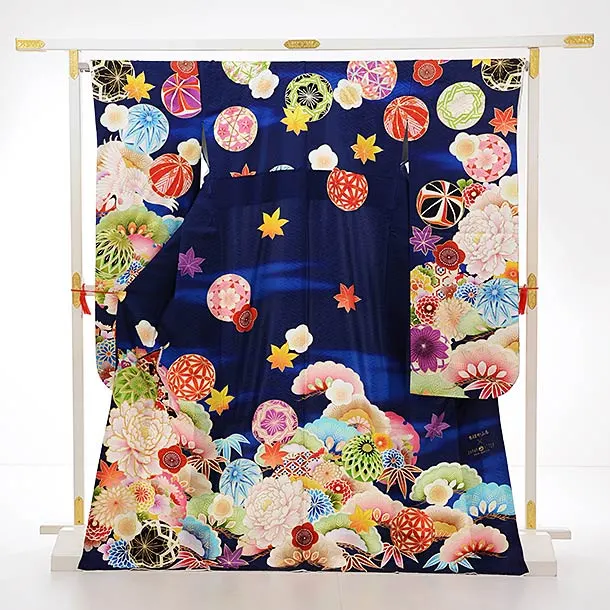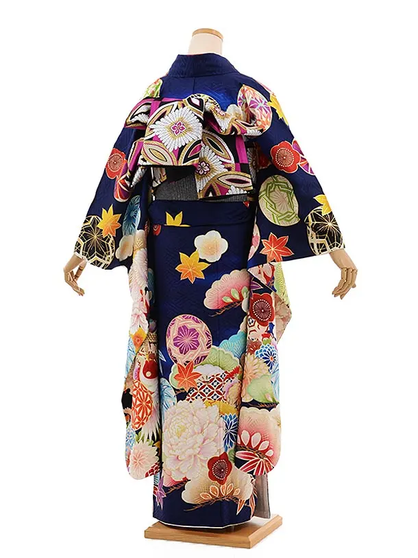 振袖レンタル1065(JAPANSTYLE)×ちはやふる紺地マリに牡丹